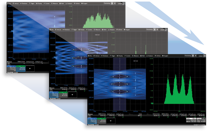 QPHY-56G-PAM4 使 PAM4 設(shè)備的測試過程變得快速而簡單。 過程很簡單:選擇要測試的標(biāo)準(zhǔn)變體,按照屏幕上的簡單說明連接您的設(shè)備,然后單擊“開始”。 QPHY-56G-PAM4 自動采集信號并對波形的相關(guān)部分執(zhí)行適當(dāng)?shù)臏y量。 當(dāng)檢測到問題時,使用強(qiáng)大的串行數(shù)據(jù)分析工具來幫助找到過度抖動或眼圖故障的根本原因。