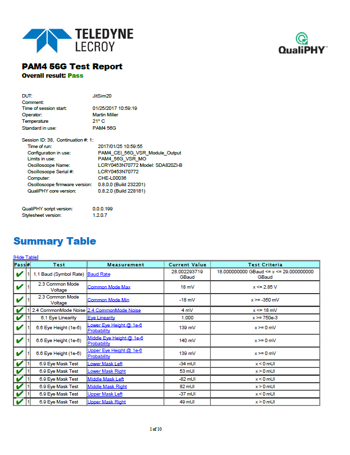 QualiPHY 報告生成創(chuàng)建包含所有相關(guān)測試信息