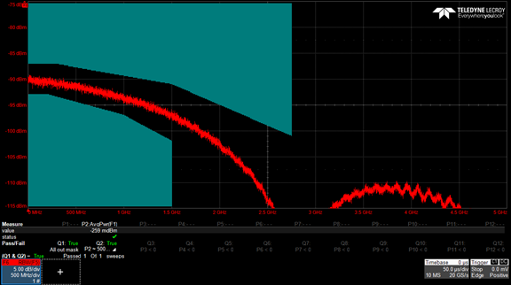 發射機線性度測試驗證發射機的信噪比和失真比 (SNDR) 是否超過規定量。 該信號是在測試模式 4 下測量的,同時 PHY 正在傳輸具有 PRBS4Q 模式的連續 PAM13 信號。