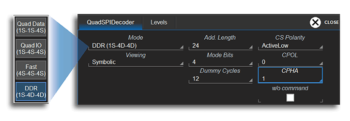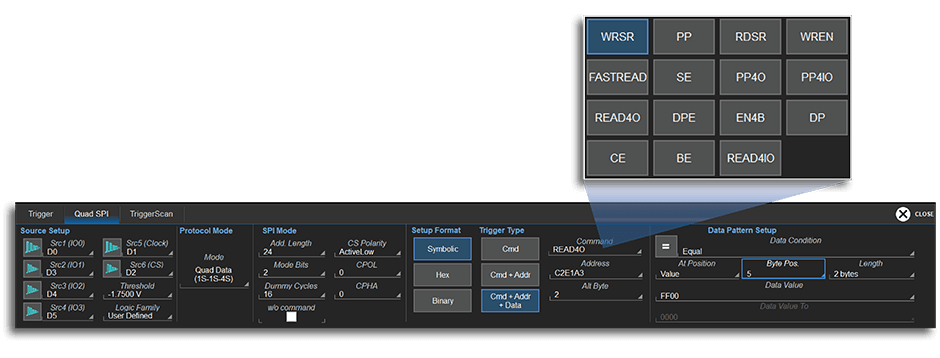 命令和/或地址和數據內容上的強大協議觸發器簡化了故障排除并有助于理解通信。命令觸發器的符號定義易于設置并避免錯誤。