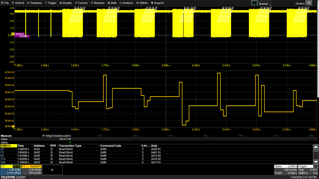 將示波器轉(zhuǎn)換成協(xié)議分析儀,并以表格形式顯示解碼信息。 自定義表格以僅顯示感興趣的數(shù)據(jù)并觸摸表格中的消息以自動(dòng)縮放到它并將其顯示在屏幕上。 導(dǎo)出表以供離線分析, 表中最多可同時(shí)顯示四種不同的任何類型的解碼信號(hào)。