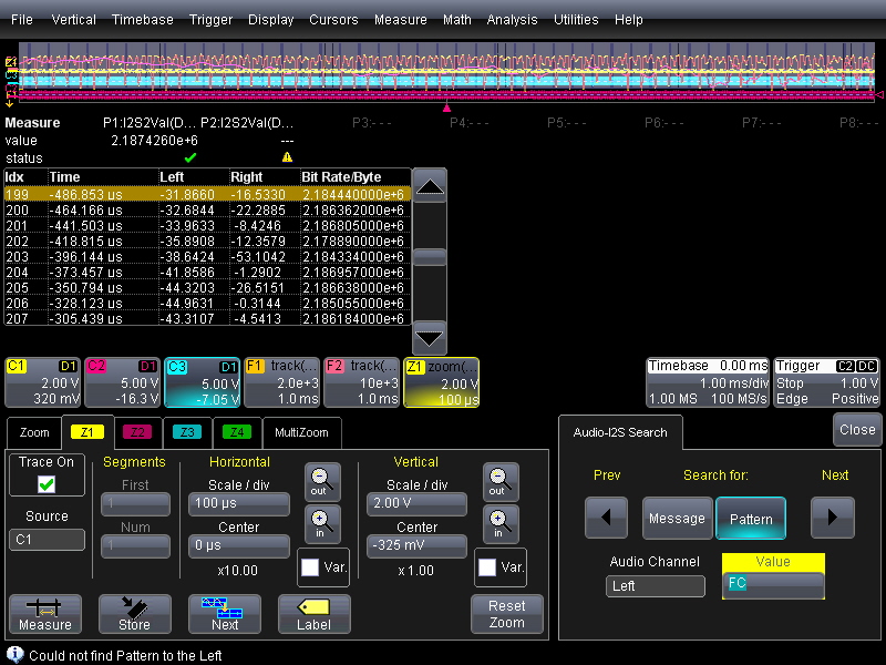一次最多可以解碼 4 條總線。 此外,還可以顯示縮放(帶有解碼信息)。 |