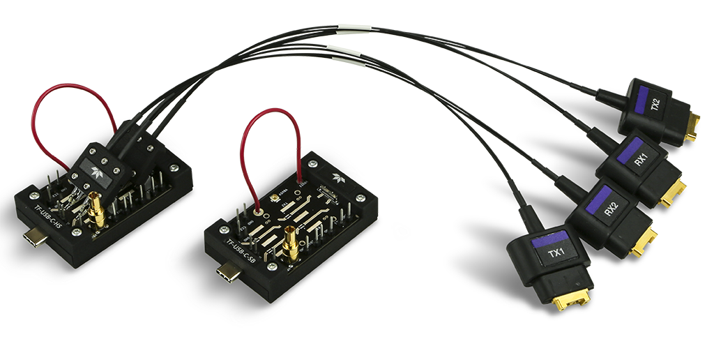 TF-USB-C-HS 測試儀使業界唯一的示波器觸發 USB4-SB 信號并同時捕獲活動鏈路上高達 20 Gb/s 的高速數據。 TF-USB-C-SB 測試儀支持使用所有示波器型號進行僅 USB Type-C 邊帶測量。