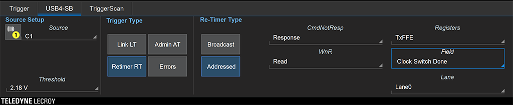 設置 USB4-SB 觸發器用于在鏈路訓練期間捕獲特定事件,解碼表用于驗證設備之間的邊帶鏈路管理事務是否符合 USB4 規格。