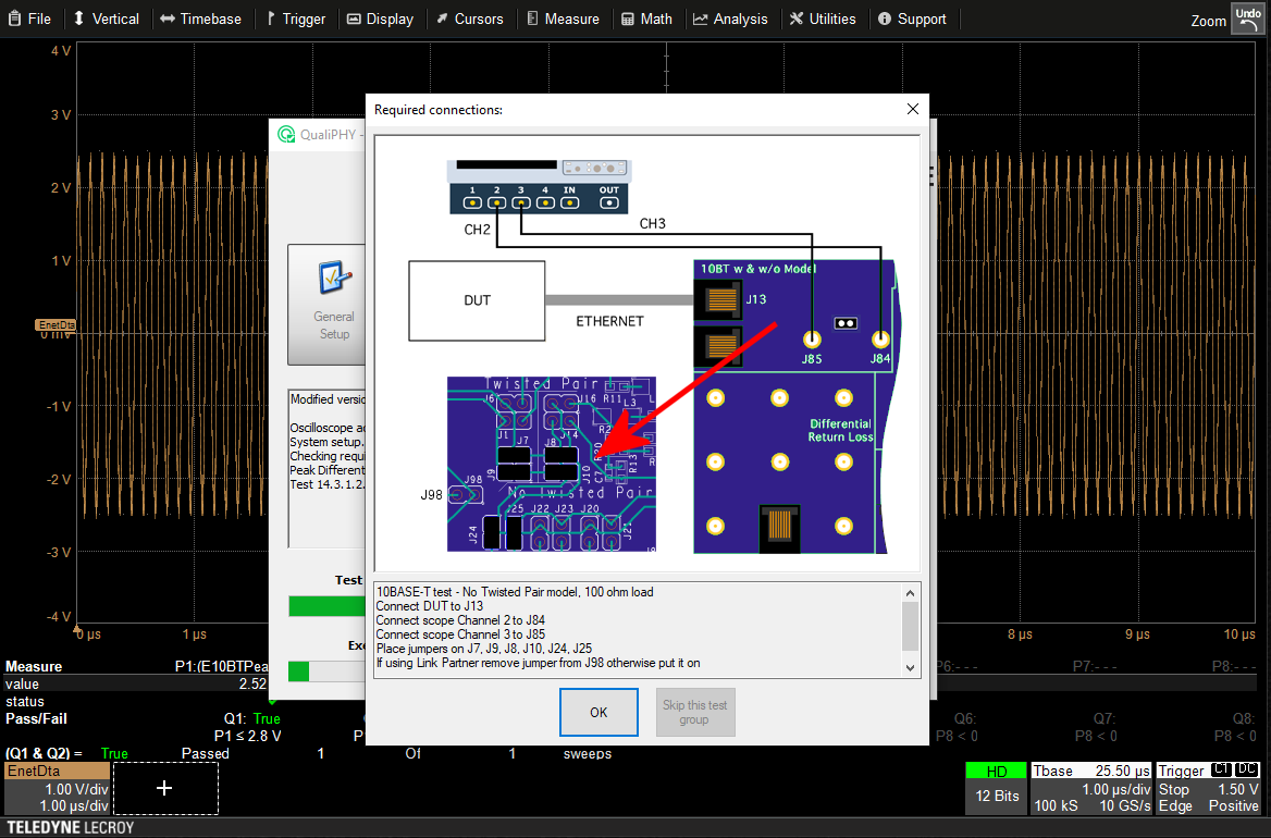 QPHY-NBASE-T 使用 QualiPHY 自動一致性測試軟件來操作示波器和干擾信號發生器。 QualiPHY 測試腳本提供連接圖并確保正確設置。 QualiPHY 使儀器自動化測試并提供全面的結果報告(包括屏幕截圖)。