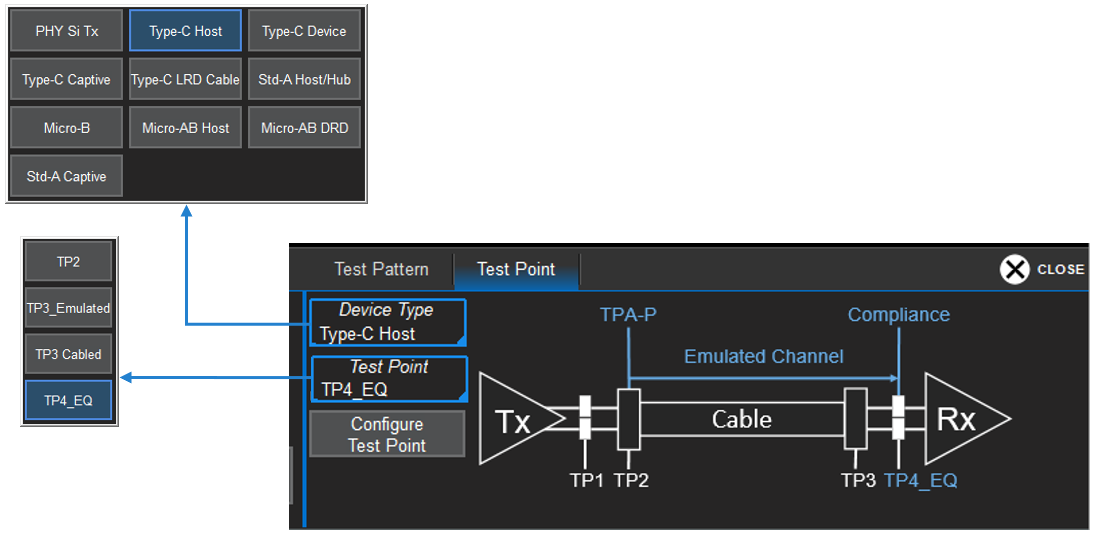 選擇 TP2 和連接器類型以在設(shè)備連接器上進(jìn)行測(cè)試